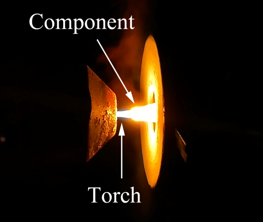 ⑤采用等温化学气相渗透、B4C陶瓷料浆浸渗-热解以及反应熔体浸渗相结合的工艺,制备出致密度高的C/C-ZrC-SiC-ZrB2复合材料,ZrC-SiC-ZrB2基体主要分布在纤维网胎层,表现出良好的反应结合。将该复合材料设计成仿前缘状构件,暴露在热流密度为2.38MW/m2的氧-乙炔焰流环境下测试120s,驻点温度高达2500℃,构件仍旧保持着完整的形状,具有优异的抗烧蚀性能。