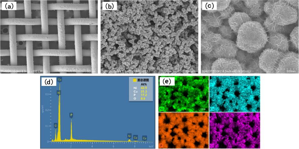 (3)采用一步水热法合成镍铜磷复合电催化剂(NiCuP/NM),该催化剂表现出优异的催化活性,为纳米尺度的合成提供了一个新的视角,推动新型纳米孔结构材料在燃料电池、电解水制氢和传感器应用中的发展。
