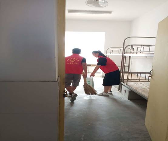 参与清洁活动的志愿者们,相互配合,擦拭桌椅、清洁地板,不留任何死角。经过大家的共同努力,寝室环境得到了极大的改善。