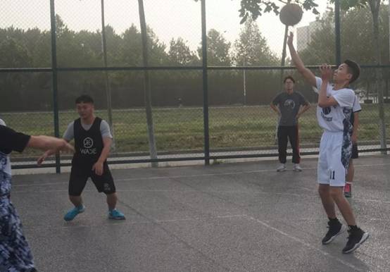 在比赛进程中,各位队员全力以赴,用心防守、越战越勇,显示了他们极佳的心理素质。在场外的同学也情绪高涨,时不时为队员打气、喝彩,气氛热烈。在赛场上,队员们一系列潇洒、规范的带球、运球、投篮的动作,引起围观同学们一次次的喝彩。球员们秉持着不怕辛苦,不怕受伤的精神,忍着伤痛、忍着疲惫顽强拼搏,最终,比分定格在39:21。比赛结束,两只队伍在经过简单的总结后,有序的离场。