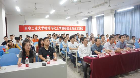 9月12日下午6时西安工业大学材料与化工学院研究生招生宣讲会在阎科楼271教室举行。西安工业大学材料与化工学院院长坚增运教授、副院长陈卫星教授、惠增哲教授以及郭永春教授出席此次宣讲会。beat365官网党总支书记兼院长谢辉、学生管理科科长张赛以及大四辅导员史倩茹出席本次会议,beat365官网2018届60余名本科生参加了宣讲会,宣讲会还吸引到很多低年级学生前来旁听。谢辉院长致辞并宣布会议开始。
