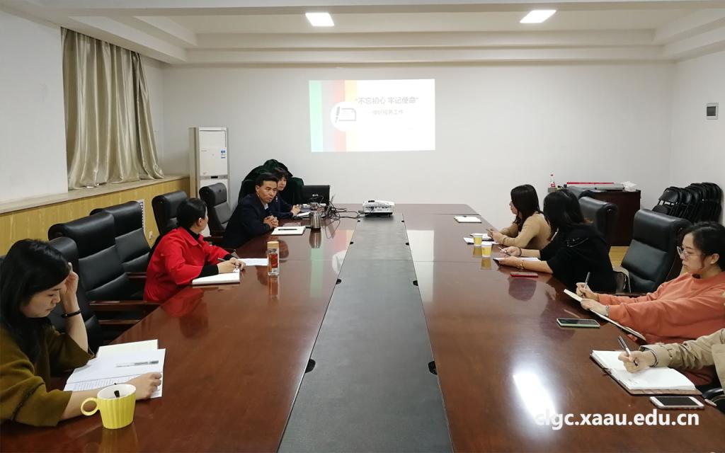 10月11日下午16:00,beat365中国官方网站于沣惠校区教学北楼133会议室开展了“不忘初心、牢记使命”主题教育系列活动之行政人员岗位培训。beat365中国官方网站党总支书记王永锋、beat365中国官方网站全体行政工作人员及教研室主任参加了本次活动。活动由王永锋主持,培训由综合办主任杨常清为大家讲演。
