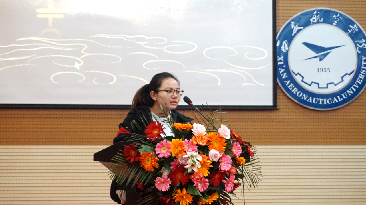 材料科学1903班李娜同学作为获奖学生代表发言,首先她对西安皓森精铸有限公司的慷慨资助、对学院老师的大力培养及同学们学习和生活上的帮助表示感谢;皓森精铸奖学金不仅是给表现优异的同学经济上的支持,更是精神上的鼓励,这不仅体现了皓森精铸企业良好的社会责任感,更彰显了皓森精铸企业文化;在大学时光中,要勇于挑战、努力奋斗,不辜负学校、企业、社会对我们的期望。