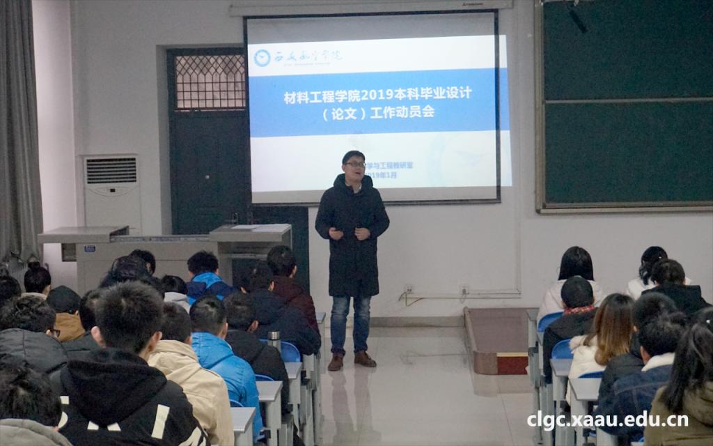 2019年1月9日上午9点,beat365官网在第二阶梯教室举行“beat365中国官方网站2019届毕业生毕业设计动员会”。出席会议的有院长谢辉,院长助理于方丽,材料学教研室、材料加工教研室及复合材料教研室全体教师,动员会由大四年级辅导员来东主持。