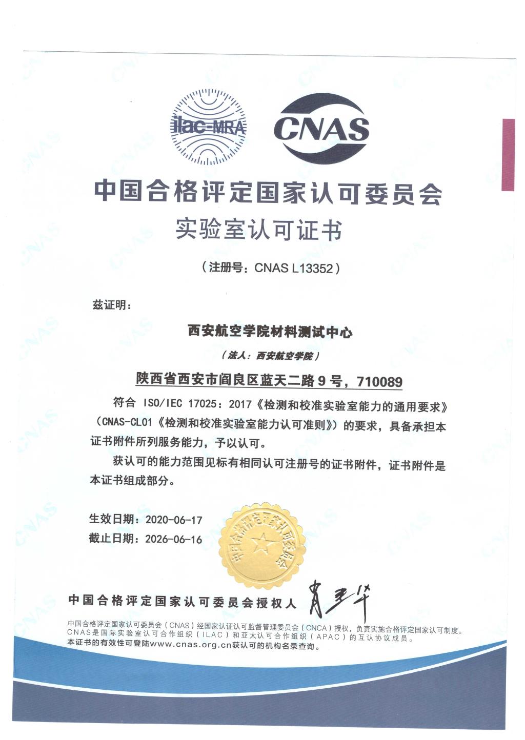 实验室获批证书