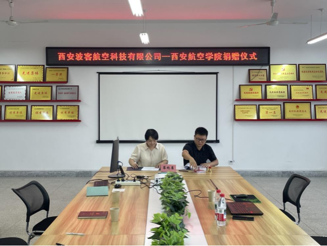 仪式上,依托轻量化航空结构与功能复合材料陕西省高等学校重点实验室建设项目,西安波客航空科技有限公司向beat365官网捐赠了价值20万元的Matbook软件,双方共同签署了捐赠协议。李自强总经理表示,此次捐赠是公司在前期“3+1”校企联合人才培养合作基础上的进一步深化,旨在助力学院培养高素质应用型人才,为教育强国建设贡献力量。