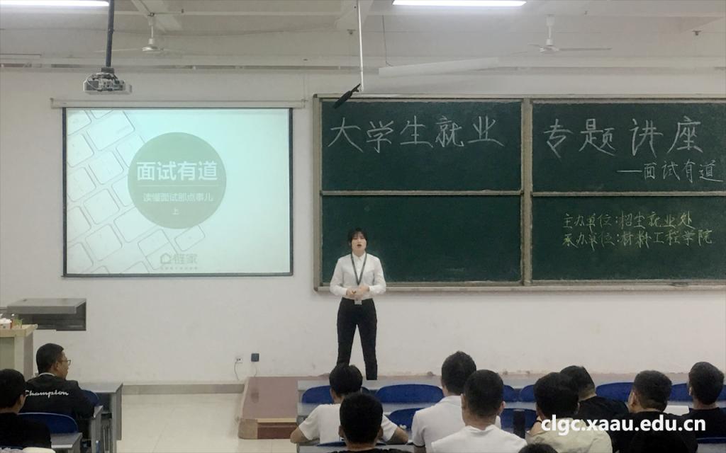 首先任倩老师向同学们介绍了材料专业学生毕业后的就业方向,着重从性格、地理位置方面对岗位选择进行了讲解。特别强调了性格对于就业选择的重要性,让每位学生充分的了解自己的性格,为同学们的就业提供了方向。其次,老师提到了简历制作的方法及自我介绍的重要性,对于简历的制作一定要切合实际,包含基本信息和突出自己特点的信息。自我介绍,一定要简洁明了,明确目的,突出特点。中途,两位同学上台尝试了企业面试的自我介绍,任老师对此次介绍做了简单的点评。最后,毕业生一定要做好自己的职业规划,在踏上工作岗位之后,需要怀着虚心的学习态度,对待工作要踏实肯干、执着追求。
