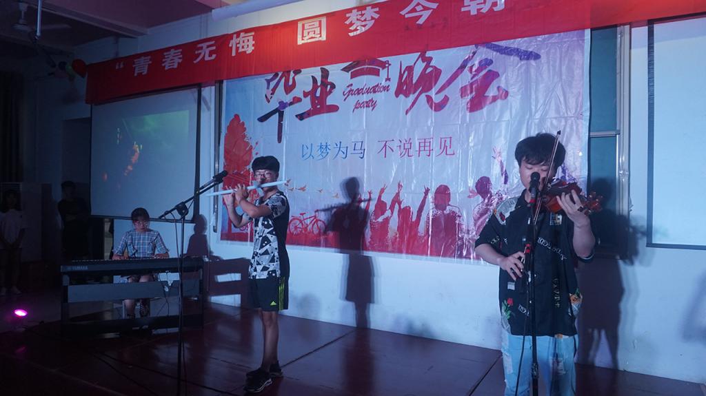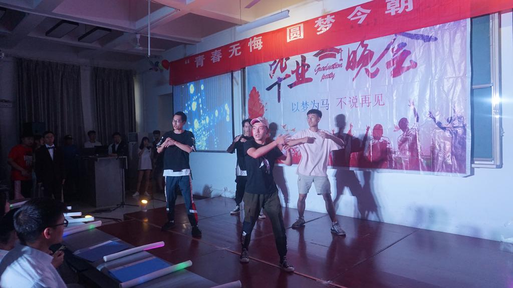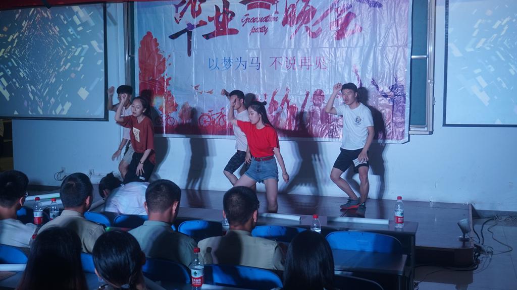 晚会伴随着激昂的旋律,文艺部编排的精美街舞表演《目不转睛》拉开帷幕,同学们尽情绽放活力,魅力四射,生动活泼的展现了当代大学生的青春活力。现场观众也情不自禁的挥动手中的荧光棒。歌曲《你的姑娘》和谐婉转,歌声美妙,整个会场沉醉在优雅的旋律中。器乐合奏《大鱼》和男女合唱《还想听你的故事》,用歌声表达了对大学四年生活的眷念。最后,王永锋书记倾情献唱一曲《我和草原有个约定》将晚会现场氛围推向了高潮。晚会最后在舞蹈社带来美妙绝伦的街舞表演《team》,将现场的气氛推向高潮,吴雪同学给我们带来的歌曲《你的酒管对我打了烊》,纷纷寄托了我们对于即将毕业的学长、学姐的美好祝福。晚会接近尾声时,学院对24名考取研究生的同学进行表彰,王永锋书记对毕业生发表寄语,并献歌一曲《我和草原有个约定》,表达对本届毕业生的深切祝福。祝愿2019届毕业生在以后的工作及生活上硕果累累,收获梦想。