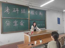 三位同学就为什么考研以及如何考研等问题分别做了详细的讲解。他们认为:考研一方面是为了未来更好的就业,另一方面也是为自己在专业领域更好的发展打下基础;如何去考研,要从专业、计划、择校、心态等几方面进行规划。风趣的语言、开门见山的风格、清晰的条理,赢得了同学们热烈的掌声。之后,同学们就自己备战考研中所遇到的问题与学长学姐展开了交流,学长学姐们就自己的经验耐心地解答了每一位同学的问题。