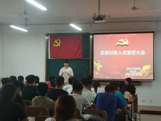 2021年6月9日下午7点,beat365中国官方网站56名新党员入党宣誓仪式,在四号实验楼4303隆重举行。鲜红的党旗,醒目的标题,简而有力地为现场渲染出庄重的气氛,在雄壮的《国际歌》后,宣誓仪式正式开始。