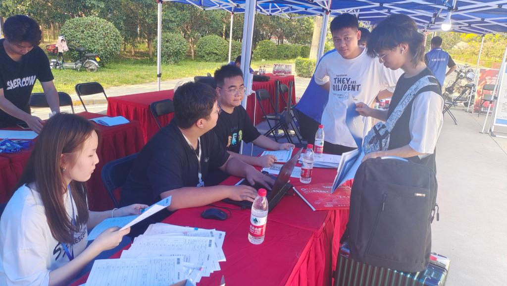 志愿者们以饱满的热情收集报到材料,确认录取信息,发放入学资料,指引新生前往宿舍……每一个报到流程都有序完成,贴心服务,耐心指引,认真落实每一个细节。