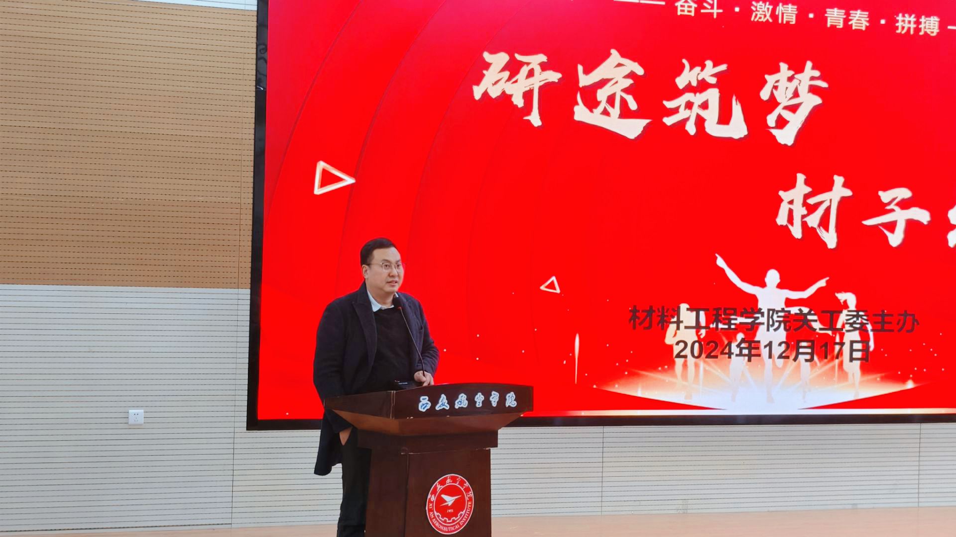 12月17日,beat365中国官方网站关工委在阶梯一报告厅举办“研途筑梦,材子出征” 2025届考研出征仪式,为即将踏上考场的考研学子们加油助威,注入强大的精神动力。学院党总支书记严碧峰、党总支副书记高均立、学工办主任雒亚男、团总支书记张立家、2024级辅导员胡欣雨等出席,仪式由2025届就业辅导员史倩茹主持,2025届考研学生参加。