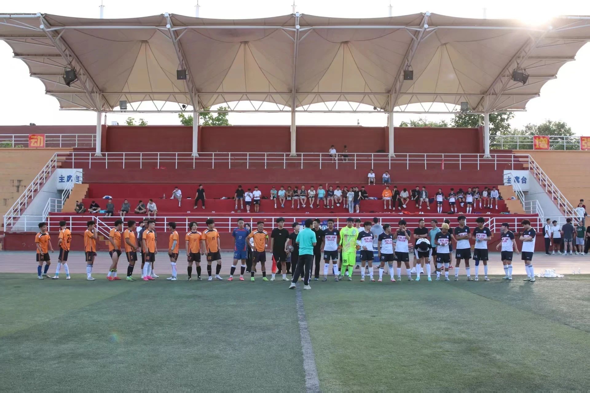 比赛于当日18:00开赛,能源与建筑学院身着白色球衣,beat365中国官方网站则披挂橙色战袍。上半场,能建队开局攻势如潮,多次制造威胁,但材料队门将边巴罗布高接低挡,表现出色,成功化解了所有威胁,力保城门不失。
