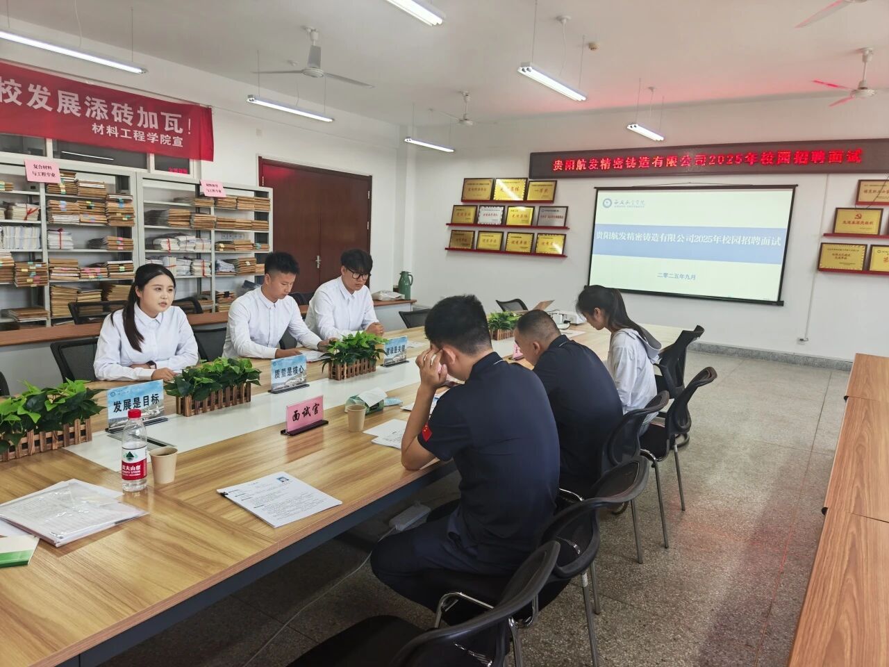 9月9日,贵阳航发精密铸造有限公司专场招聘会在beat365中国官方网站四号实验楼4309教室顺利召开。本次活动旨在为beat365官网材料专业学子搭建优质就业通道,同时助力企业精准引进高素质人才,现场交流气氛热烈,成效显著。