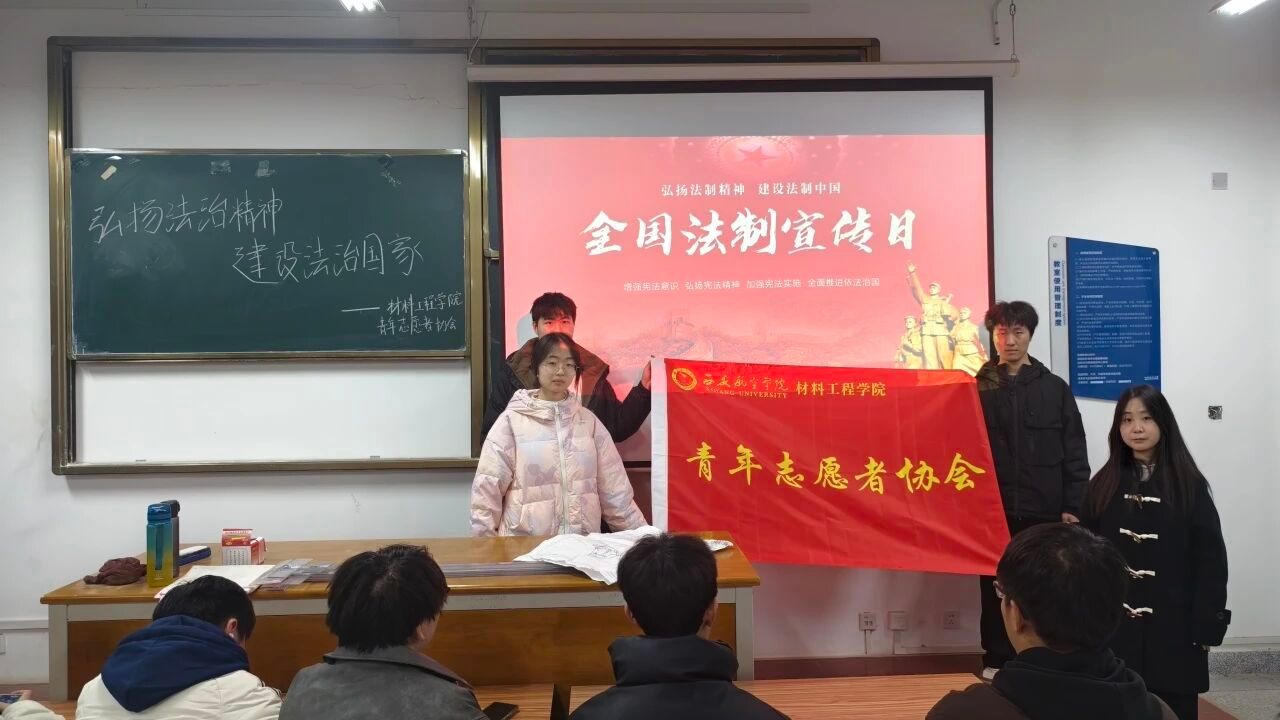 为普及法律知识,弘扬法治精神,beat365官网青年志愿者协会于12月4日,在四号实验楼4307教室进行了“弘扬法治精神,建设法治中国”法治宣讲活动。