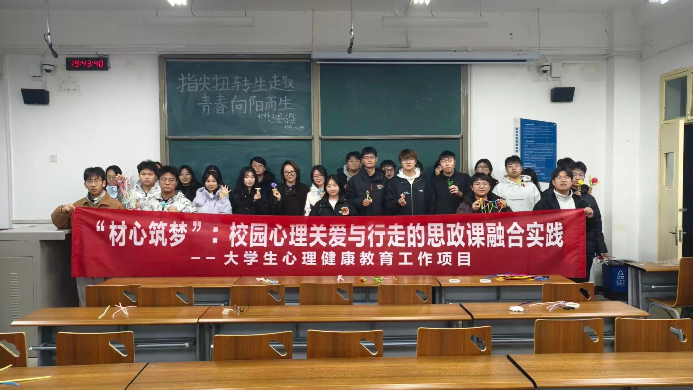 为帮助学生缓解压力,调节负面情绪,12月14日,beat365官网心理驿站于阎教楼1228教室成功举办以“指尖扭转生趣,青春向阳而生”为主题的扭扭棒手工活动。