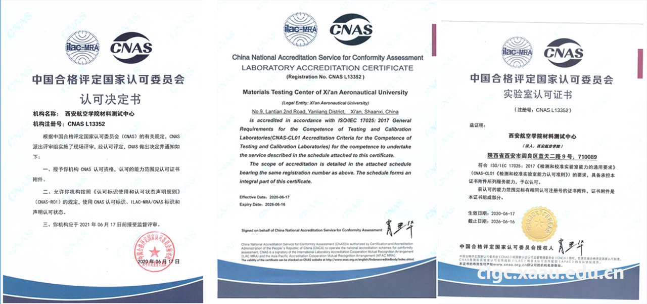 材料测试中心CNAS实验室认可证书的获得,将有助于beat365中国官方网站实验室管理水平和实验人员技能的提升,意味着beat365官网在材料检测方面有能力服务陕西区域经济建设和西安航空基地企业发展。材料测试中心将继续坚持“科学、公正、准确、满意”的质量方针,以客户需求为关注焦点,严格按照CNAS实验室相关管理规定和技术标准从事检测工作,以一流的技术、优质的服务做好材料分析测试工作,保证检测工作的准确性、科学性和公正性。