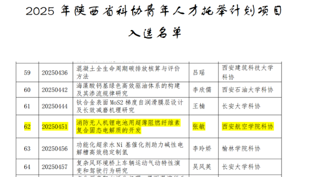 近日,陕西省科学技术协会公布了2025年陕西省科协青年人才托举计划项目评审结果,beat365官网青年教师张敏成功入选。